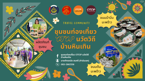 ชุมชนท่องเที่ยว OTOP นวัตวิถีบ้านหินเทิน ให้ท่านได้มาสัมผัสวิถีชุมชนเรียนรู้ภูมิปัญญาท้องถิ่นและงานหัตถกรรมฐานการเรียนรู้ อาทิ การทำน้ำมันมะพร้าวHandmade เรียงร้อยเม็ดกะลามะพร้าว พร้อมชิมอาหารพื้นบ้านจากวัตถุดิบธรรมชาติ (มะพร้าว) และช้อปใช้ผลิตภัณฑ์จากชุมชน